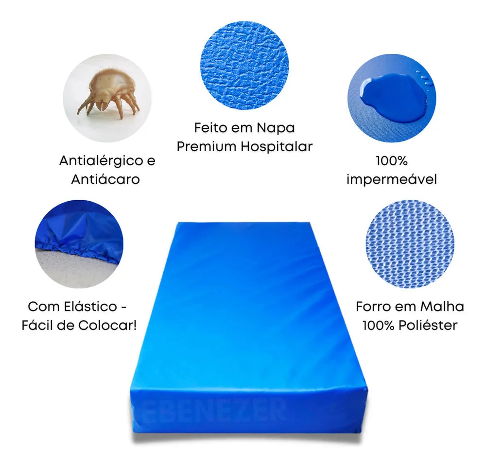 A capa é feita de Napa Premium, um material de alta qualidade com um forro interno de malha de poliéster que garante maior resistência e transforma um colchão comum em um colchão hospitalar totalmente higiênico e antialérgico.