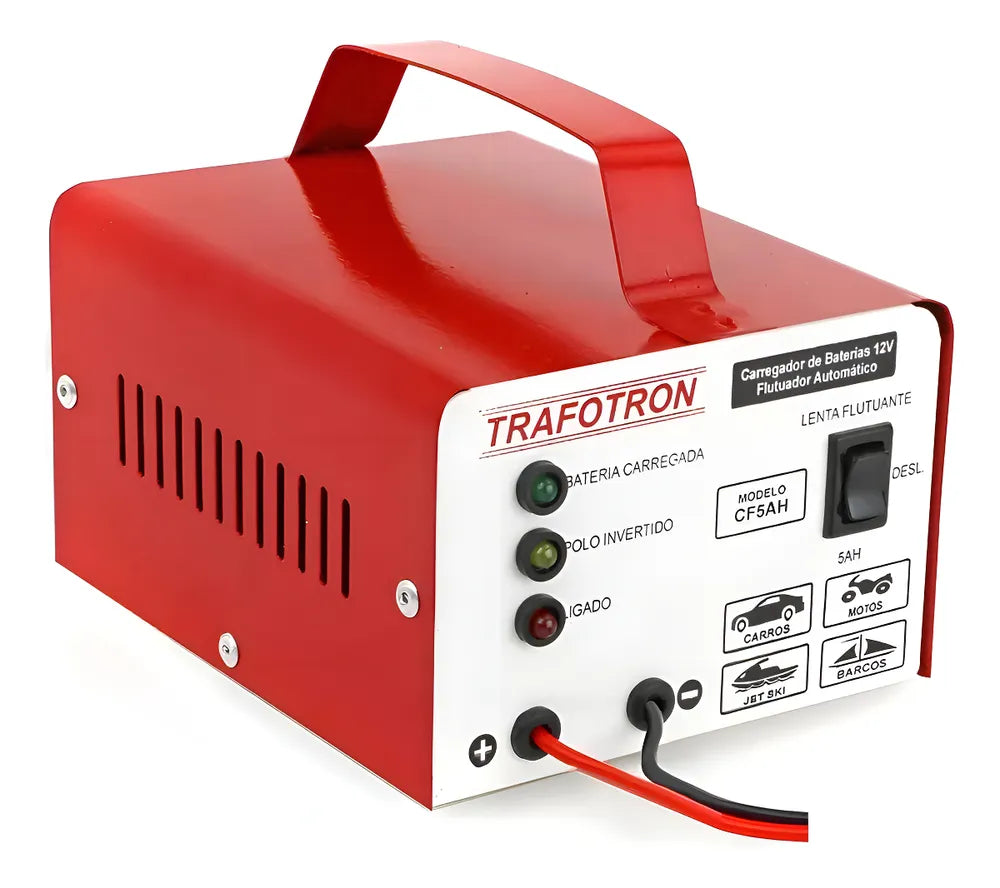 Fabricados com matéria-prima de excelente qualidade, os carregadores de baterias efetuam a carga de baterias 12v de qualquer amperagem, conforme sua necessidade. Recomendado para baterias de carro, moto, barco e caminhão. Produto bivolt 110/220 e com duas opções de carga, lenta (2ah) e semi-rápida (5ah).