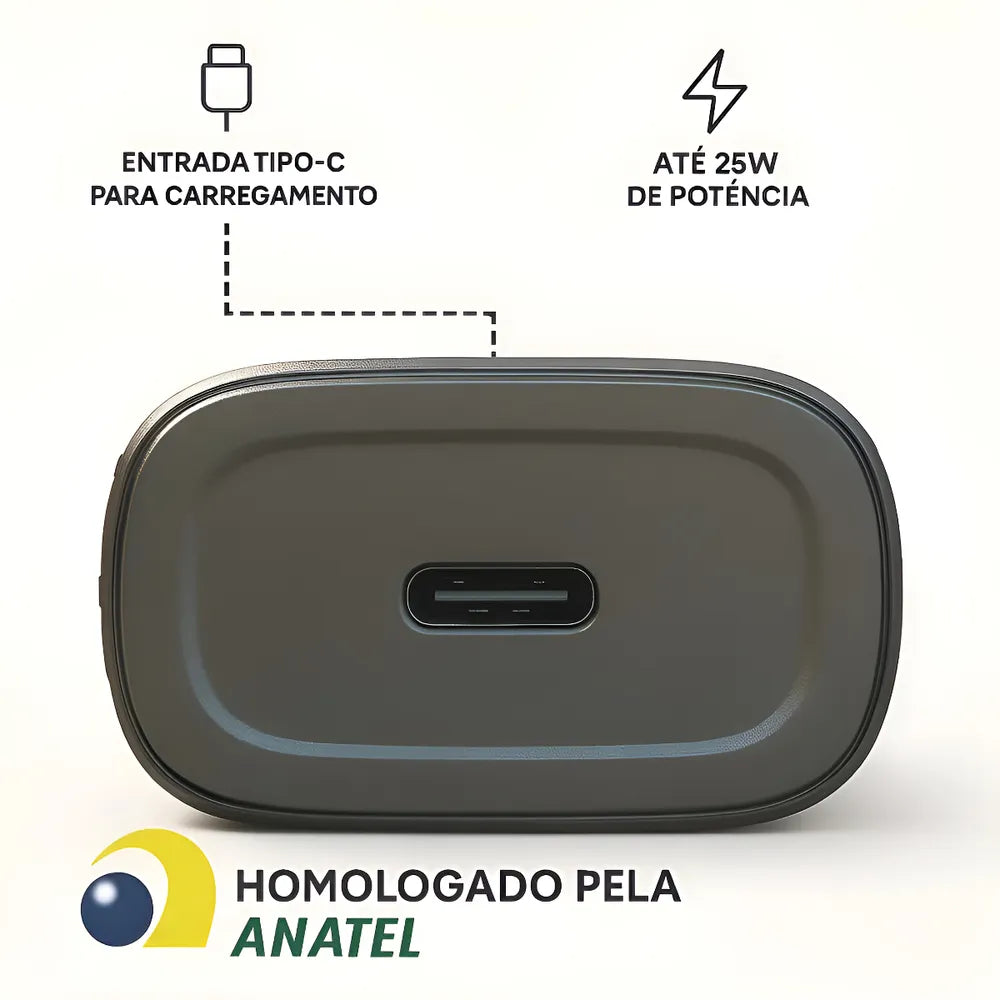 Acompanha cabo USB-C blindado, projetado para garantir transferência estável de energia e maior durabilidade.