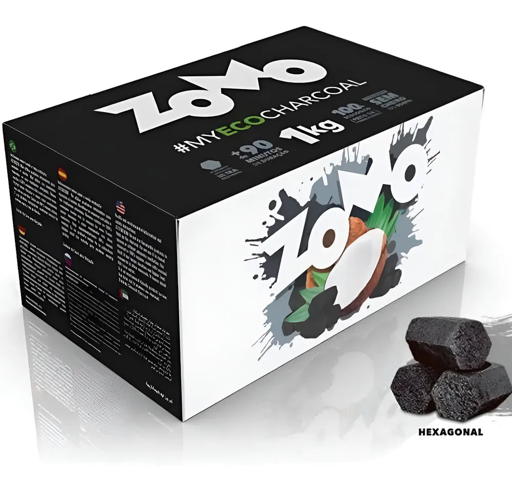 Carvão de Coco Zomo é um ótimo produto para tornar sua sessão prolongada e sem interferência de cheiros e sabores. O carvão é hexagonal, o que garante maior segurança em cima do rosh e um aproveitamento melhor de espaço e calor.