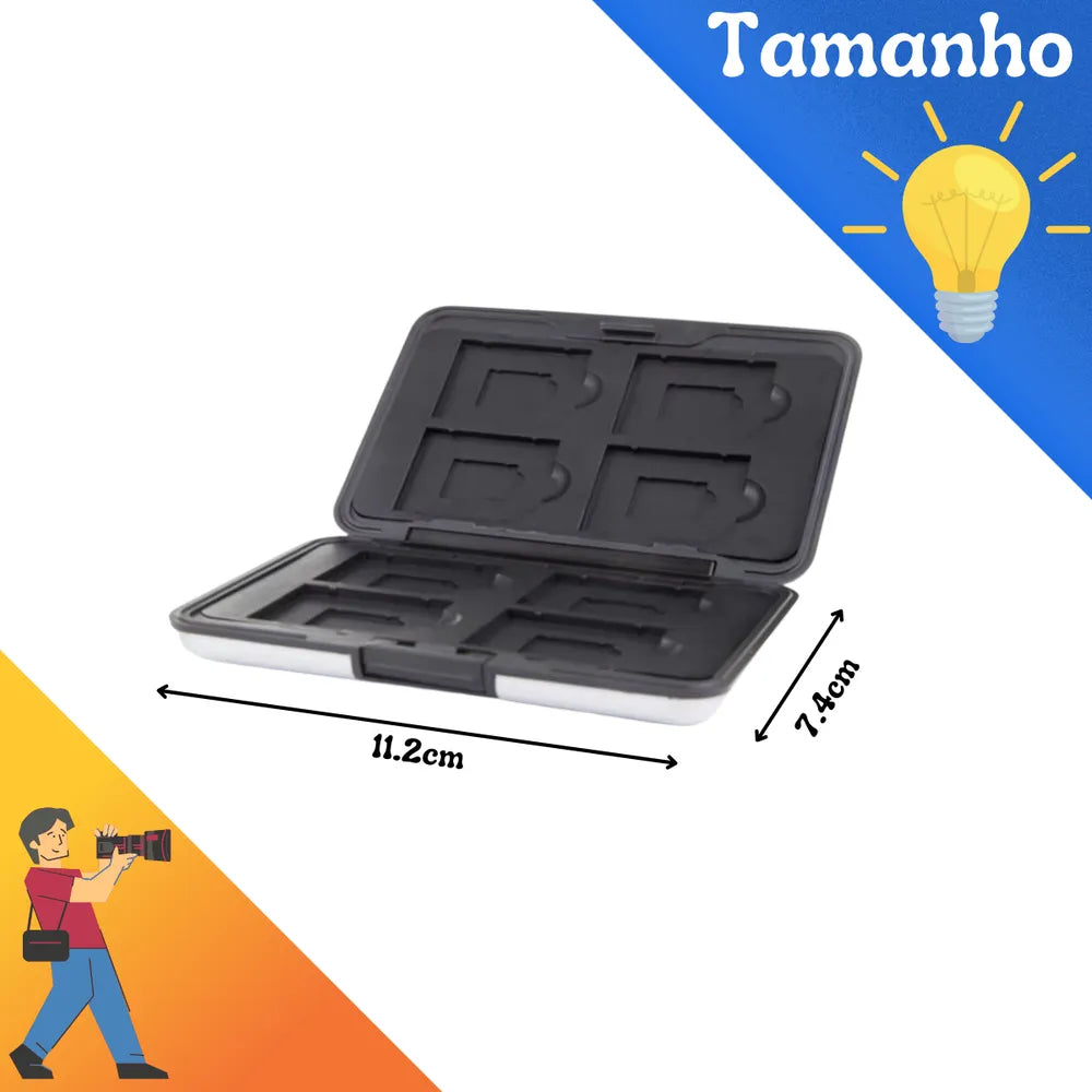 Além disso, seu design prateado traz um toque de elegância e sofisticação. Ideal para fotógrafos, cinegrafistas e amantes de tecnologia, esse case é novo e vem embalado individualmente. Garanta já o seu e tenha seus cartões de memória sempre à mão, de forma segura e organizada.