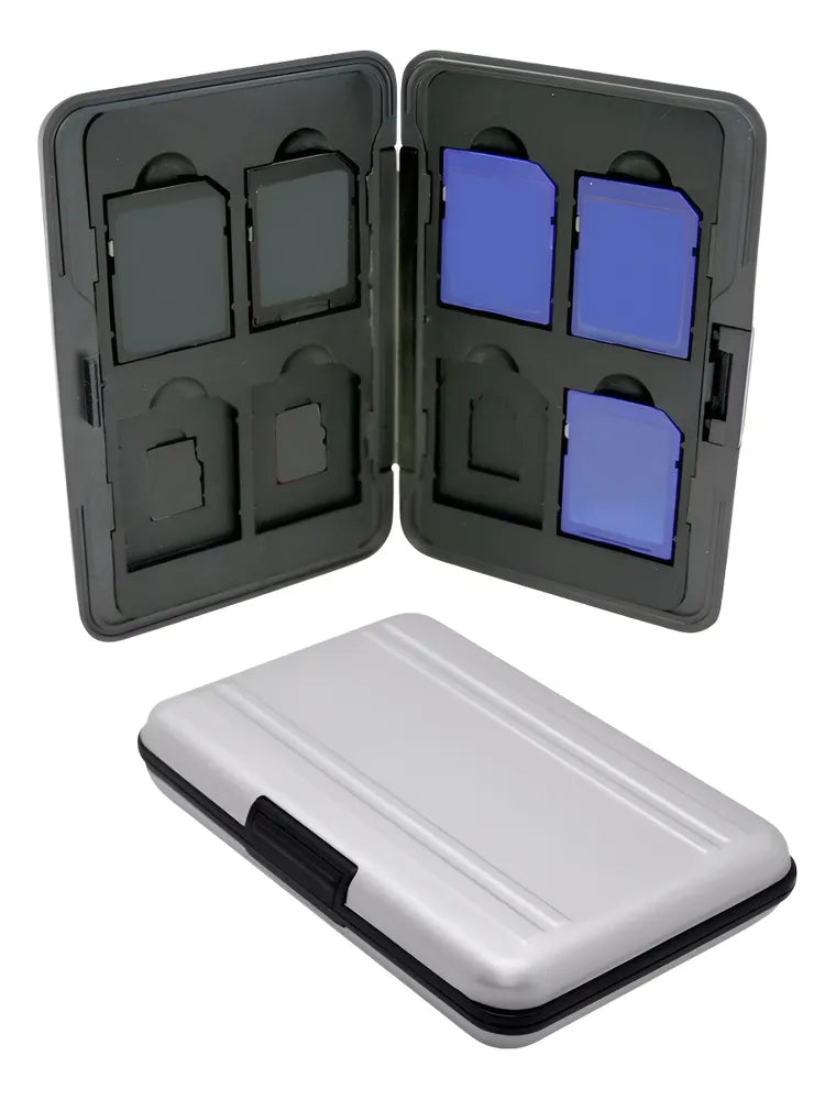 O Estojo Case Alumínio Cartões de Memória Sd e Micro Sd da marca Vibe Shoot é prático e seguro para