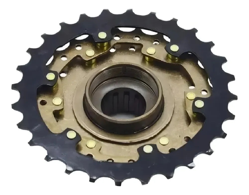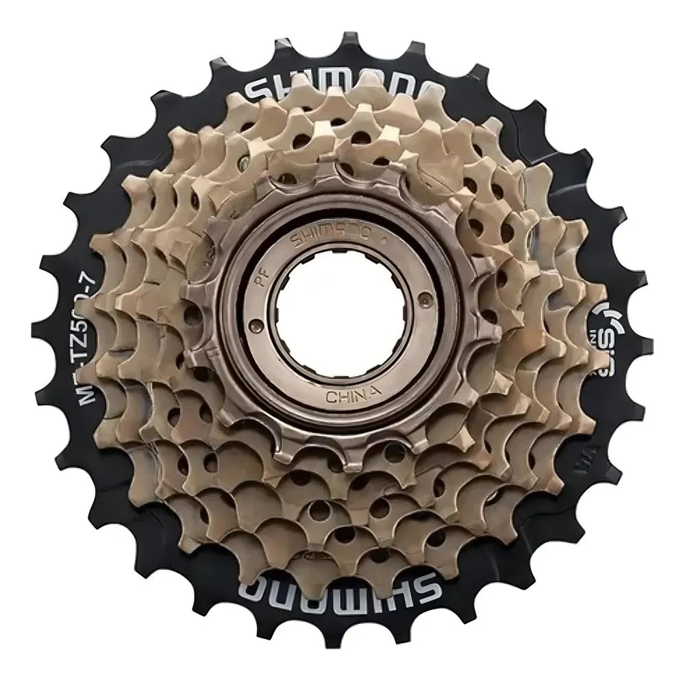 Com construção leve e recurso de montagem fácil, a roda livre Shimano Tourney TZ conta com sete velocidades, apresentando uma faixa de 14-28 dentes.