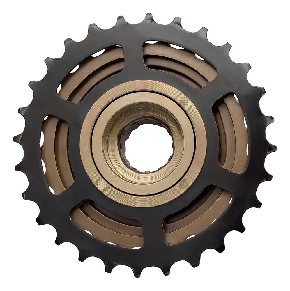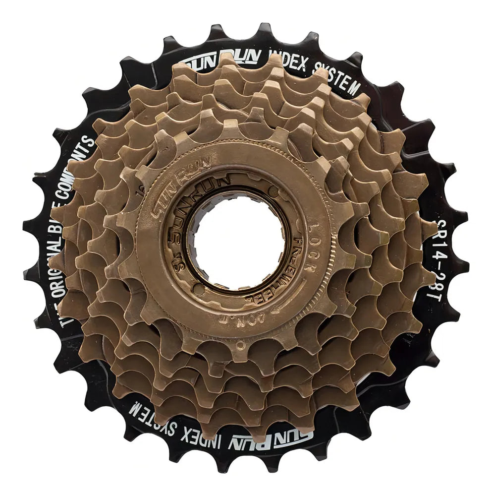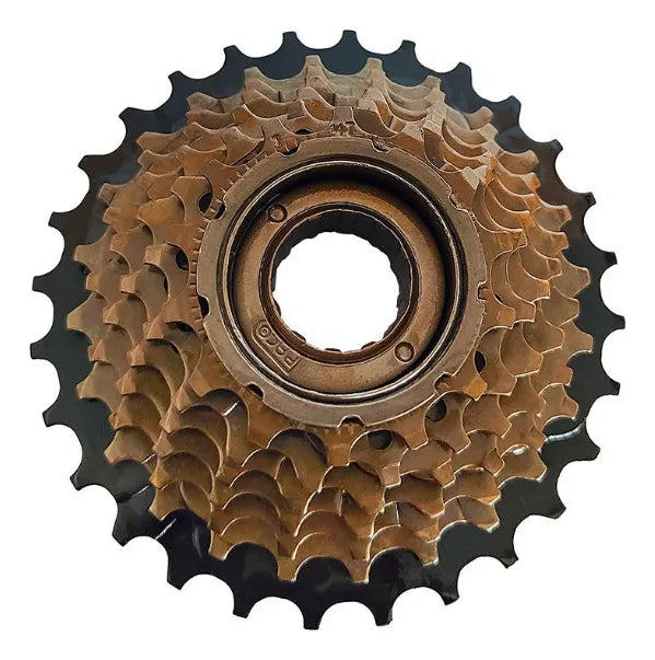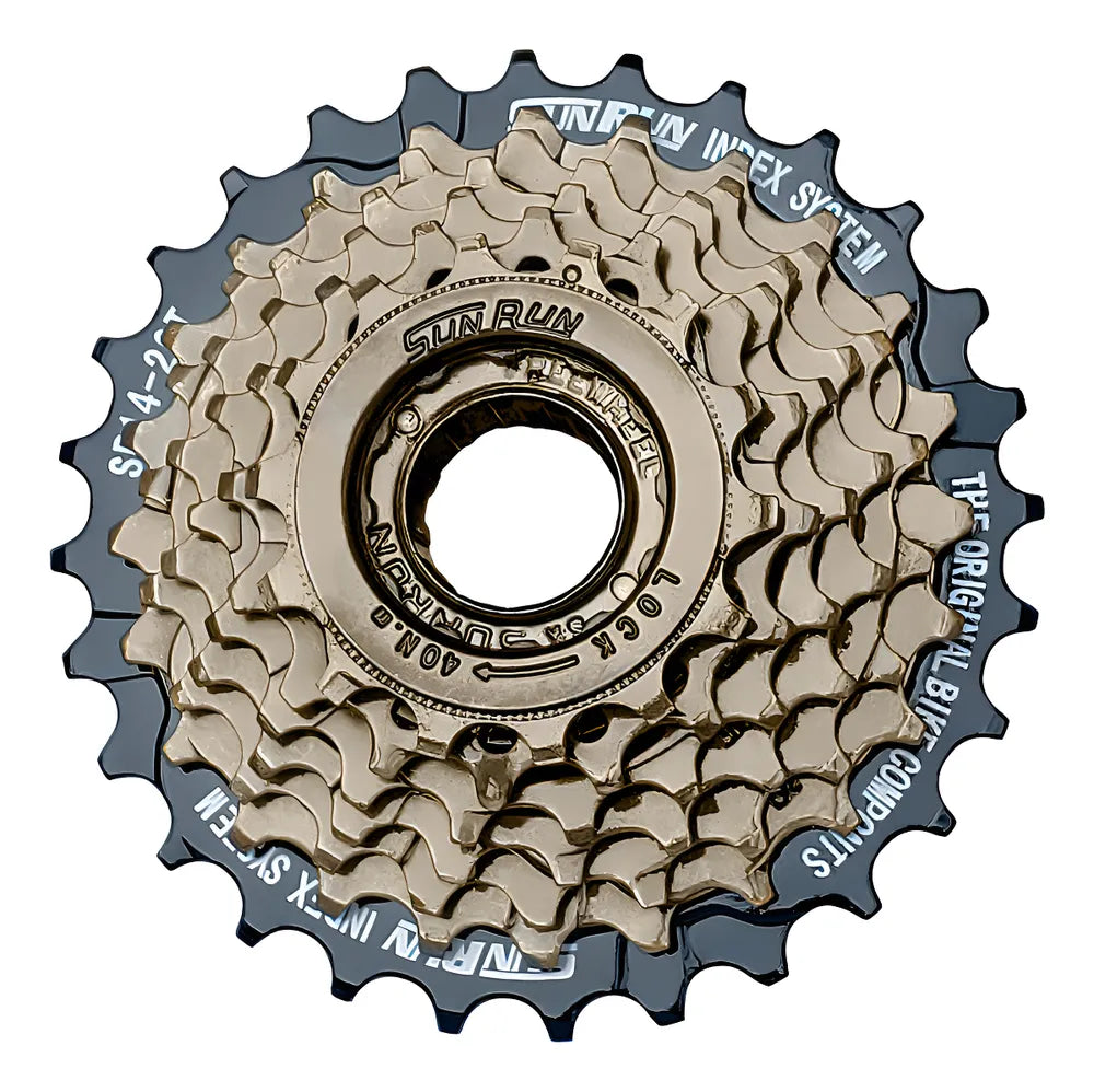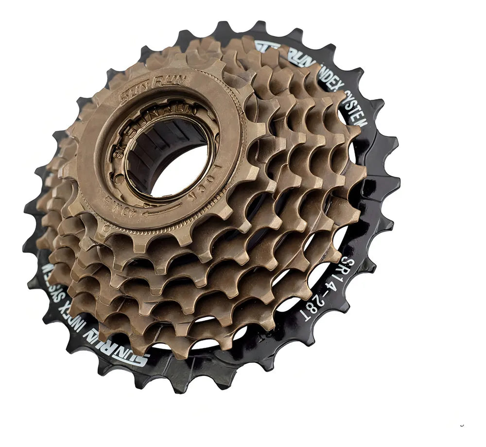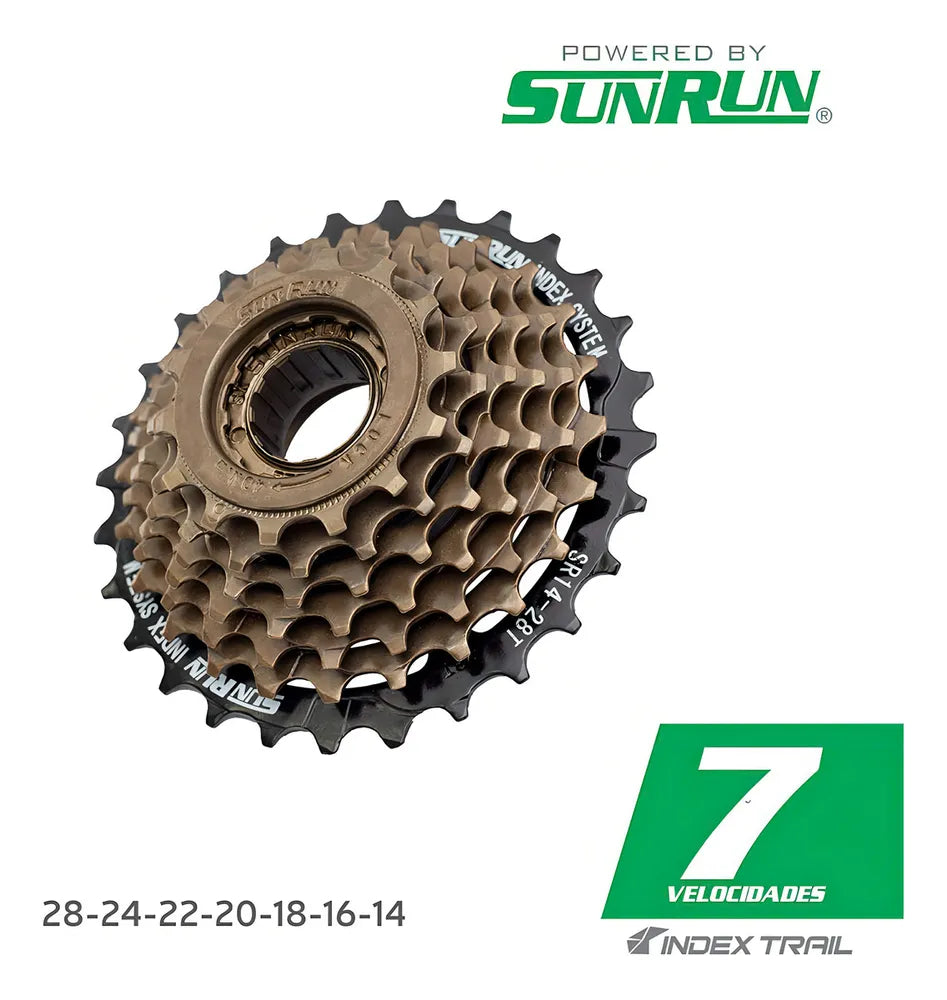 A Catraca Roda Livre 7 Marchas 14/28 Index Sunrun Ultima Preta é perfeita para os amantes de mountain bike. Com sua cor dourado-escuro, ela traz um toque de estilo para sua bicicleta. Feita em aço resistente, garante durabilidade e desempenho. Com um mecanismo de transmissão de catraca, você pode alternar entre as 7 marchas com facilidade. Com uma quantidade máxima de dentes de 28 e mínima de 14, você terá opções para enfrentar diferentes terrenos. Fácil de montar com seu sistema de rosca. Aproveite essa oportunidade de melhorar sua experiência de pedalada com a Catraca Roda Livre 7 Marchas 14/28 Index Sunrun Ultima Preta.