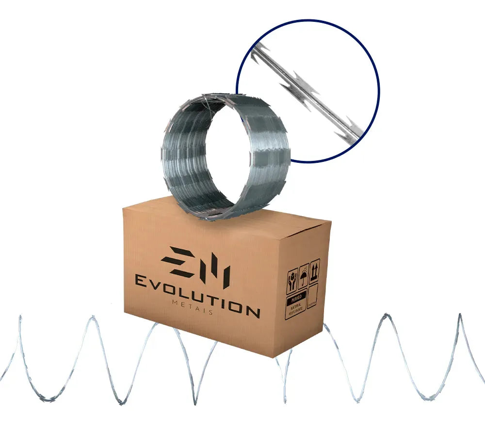 O produto é fabricado em aço galvanizado com tratamento galvalume, o que deixa a concertina com durabilidade superior. A fabricação é feita com matéria-prima nacional de extrema qualidade.