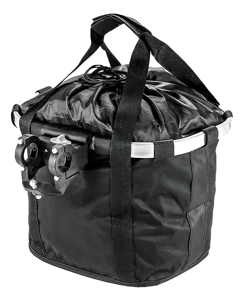 - Produzida em tecido poliuretano com suporte tipo engate rápido para guidão alça de transporte e cordão de fechamento
