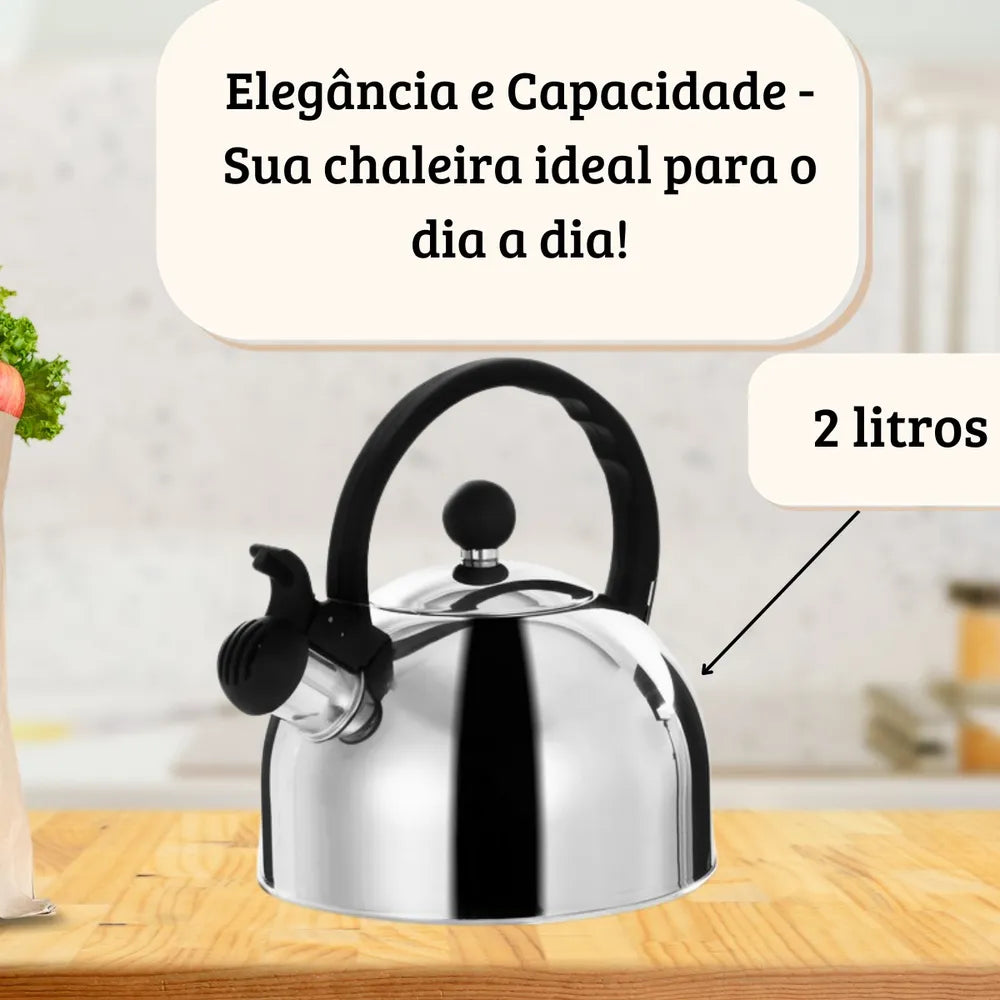 Dê as boas-vindas à nossa Chaleira Inox Com Apito, o complemento perfeito para a sua cozinha sofisticada. Com seu design moderno e capacidade de 2 litros, ela não apenas acrescenta estilo, mas também resolve os problemas comuns que você enfrenta diariamente.