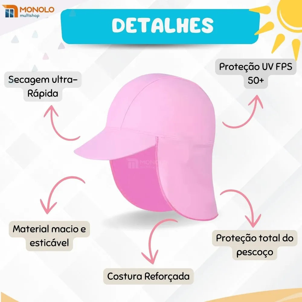 BONÉ INFANTIL BEBÊ COM PROTEÇÃO SOLAR UV50+