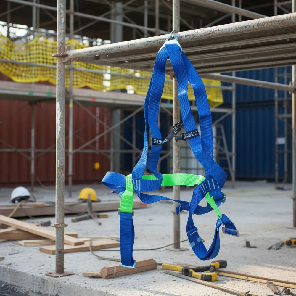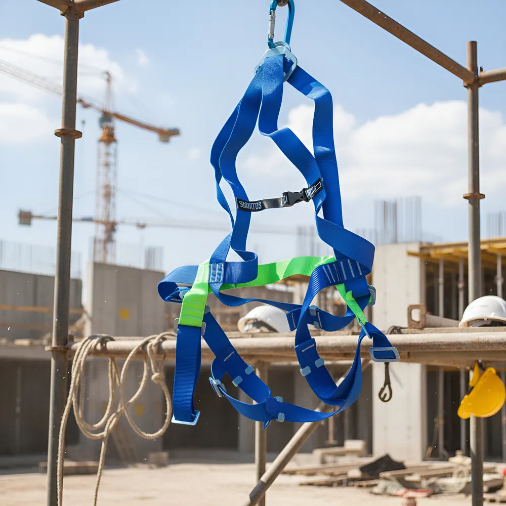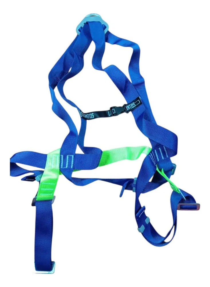 Cinturão de segurança do tipo paraquedista confeccionado de fitas primárias de poliéster com 45 mm de largura e fitas secundárias de poliéster com 25 mm de largura, com ajuste. Fitas primárias da coxa com ajuste de poliéster e fivelas de ajustes em aço nas coxas. Fivela de ajuste em aço na cintura; regulagem dorsal de plástico; 1 argola de aço, tipo D. Presilha LIFE CINTOS para ajuste peitoral.