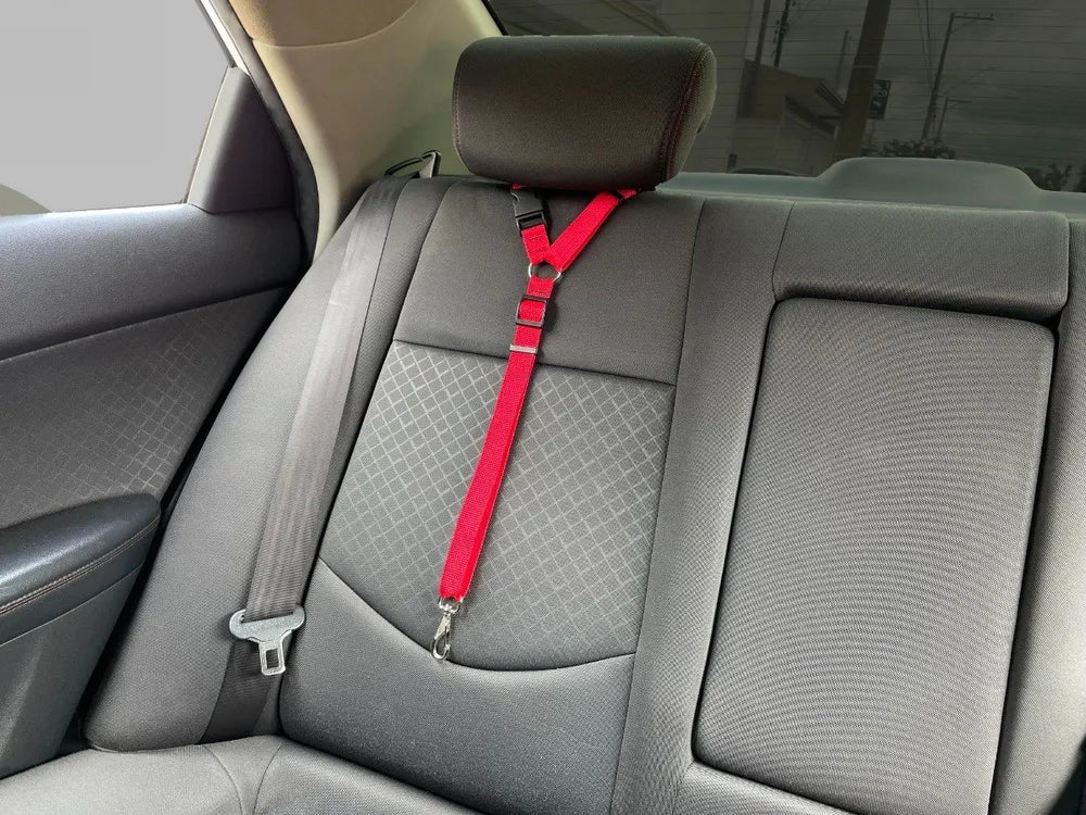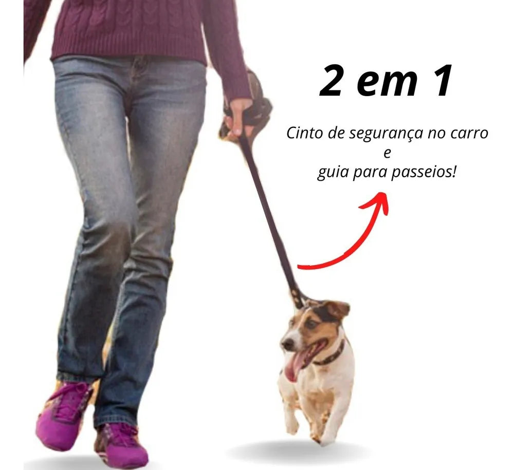 O cinto é fabricado em fita de nylon resistente e costurada para maior segurança do seu pet, em uma das pontas possui um mosquetão de alta qualidade reforçado com rotação 360° e trava para encaixe em peitorais. Na outra ponta, uma alça que se encaixa em qualquer modelo de encosto de cabeça do veículo.