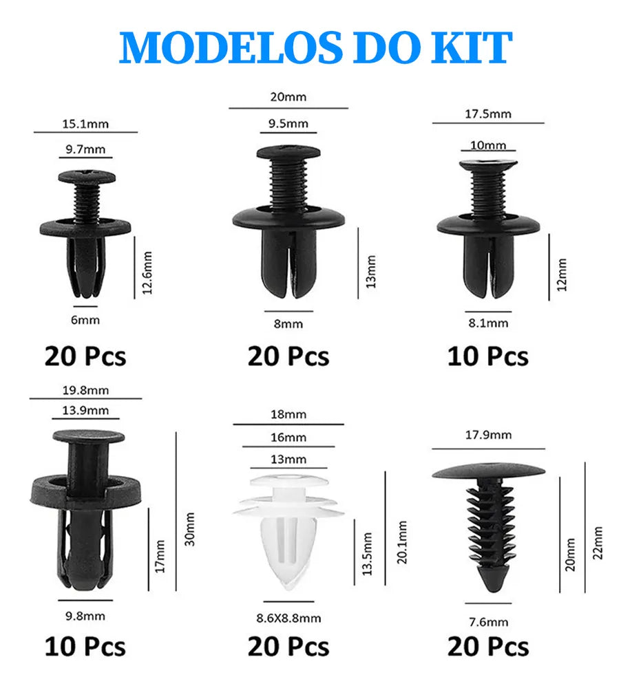 Este kit é indispensável para quem busca praticidade e qualidade na fixação de componentes do veículo, como forros de porta, para-choques e parabarros. Com 100 presilhas universais e um estojo organizador de brinde, você terá sempre a peça certa à mão para reparos rápidos e eficientes.