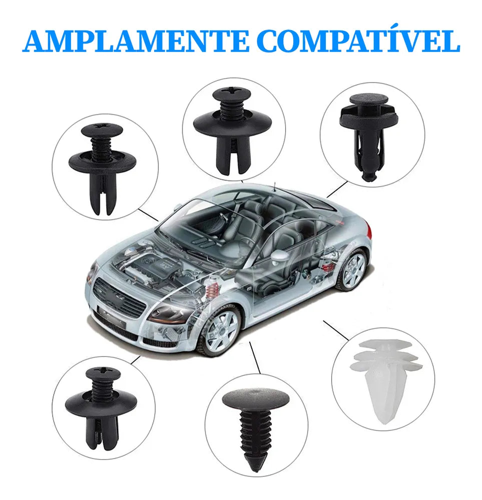 Versatilidade Universal: Compatível com diversos modelos de carros, garantindo uma solução prática para fixar peças de acabamento interno e externo.