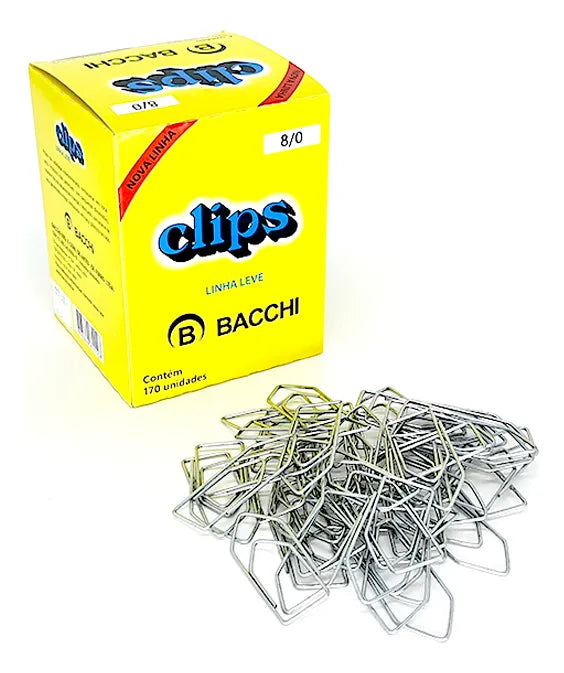 Os Clips de Papel Bacchi 8/0 são a escolha perfeita para organizar seus documentos com eficiência e estilo. Com uma cor cinza sofisticada, esses clipes adicionam um toque de elegância ao seu espaço de trabalho, enquanto mantêm seus papéis seguros e ordenados.