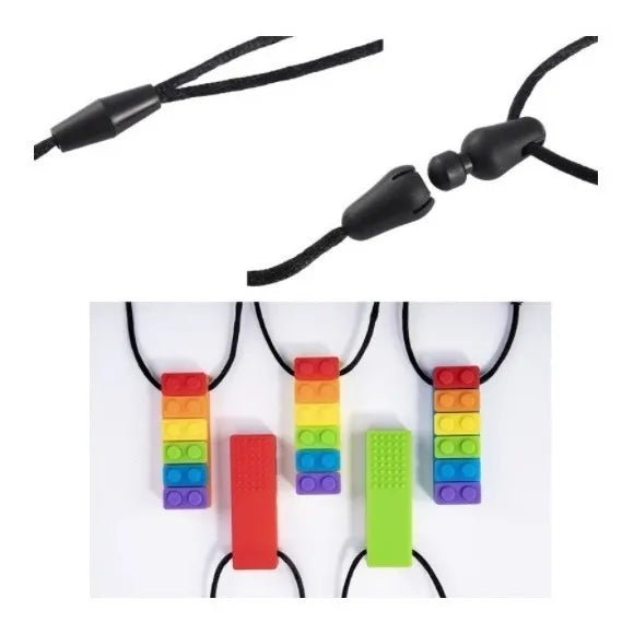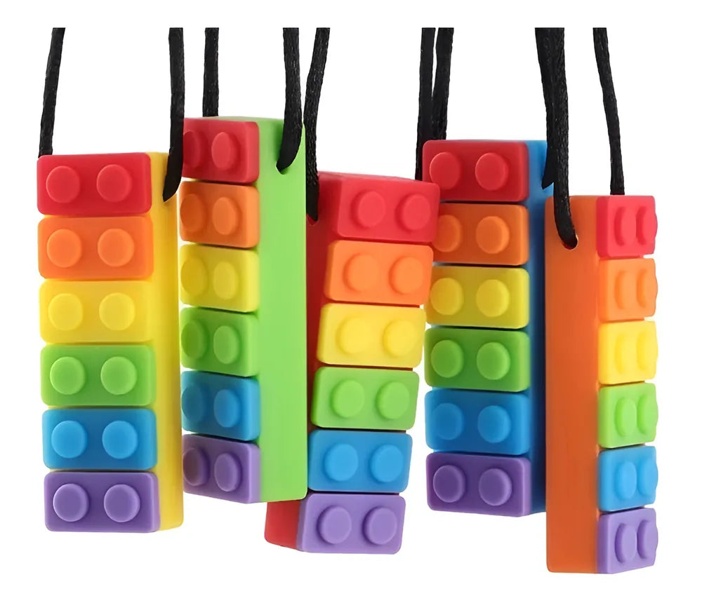 Apresentamos o Colar Mordedor Sensorial em Silicone para Autismo e Ansiedade. Este produto é uma ferramenta terapêutica eficaz e discreta, projetada para ajudar a acalmar e a melhorar o foco. Com um design de bloco colorido em forma de Lego, é atraente e divertido para crianças e adultos.