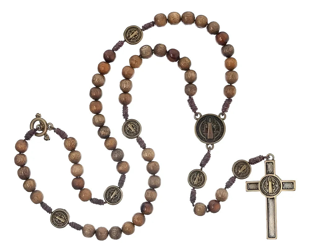 Contas em Madeira Imbuia com Cruz São Bento e Medalhas em Ouro Velho com Fecho prático e fácil de colocar e retirar.