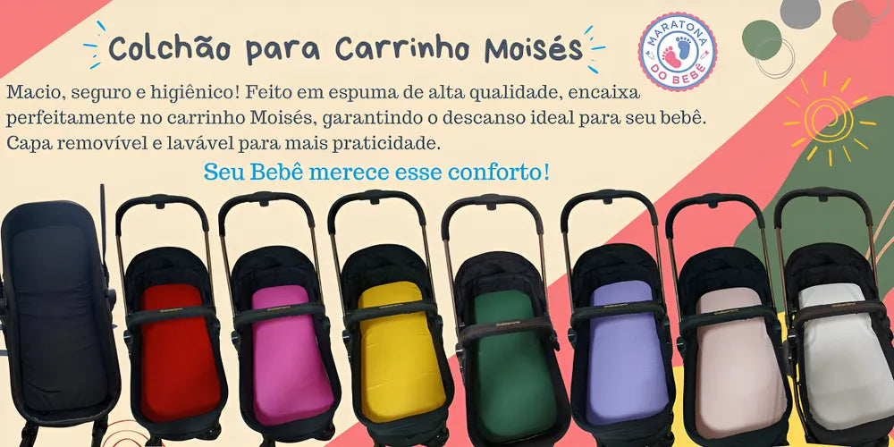 O Colchonete para Carrinho é macio e proporciona maior conforto para o bebê, fácil de lavar e secar. Possui enchimento de 3cm de poliuretano para maior conforto. Adaptável em carrinhos, moisés, bebê conforto e poltrona para automóvel.