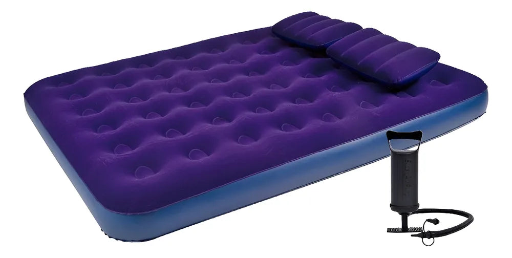 Colchão Inflável Casal QUEEN Flocked 2,03m x 1,52m x 22cm + Bomba Manual + Travesseiro