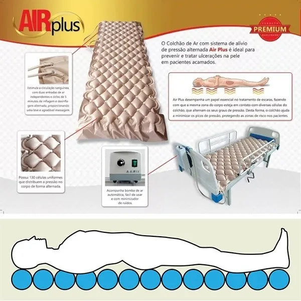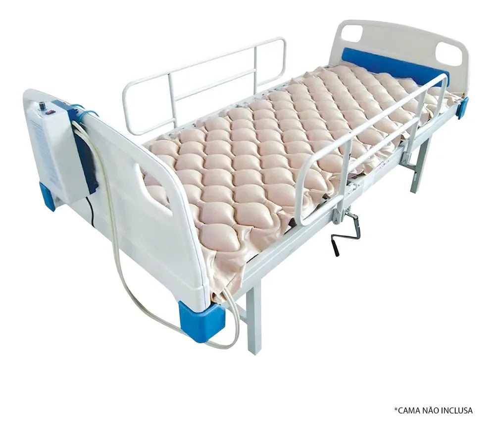 Colchão de ar hospitalar Air Plus Superior Eggshell, 135 kg, 127 V/220V Dellamed, para prevenção de úlceras e feridas por meio de um sistema alternativo de alívio de pressão nas áreas do corpo.