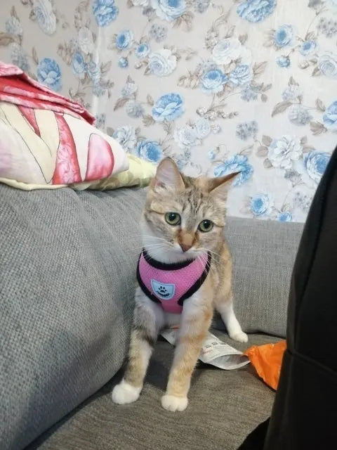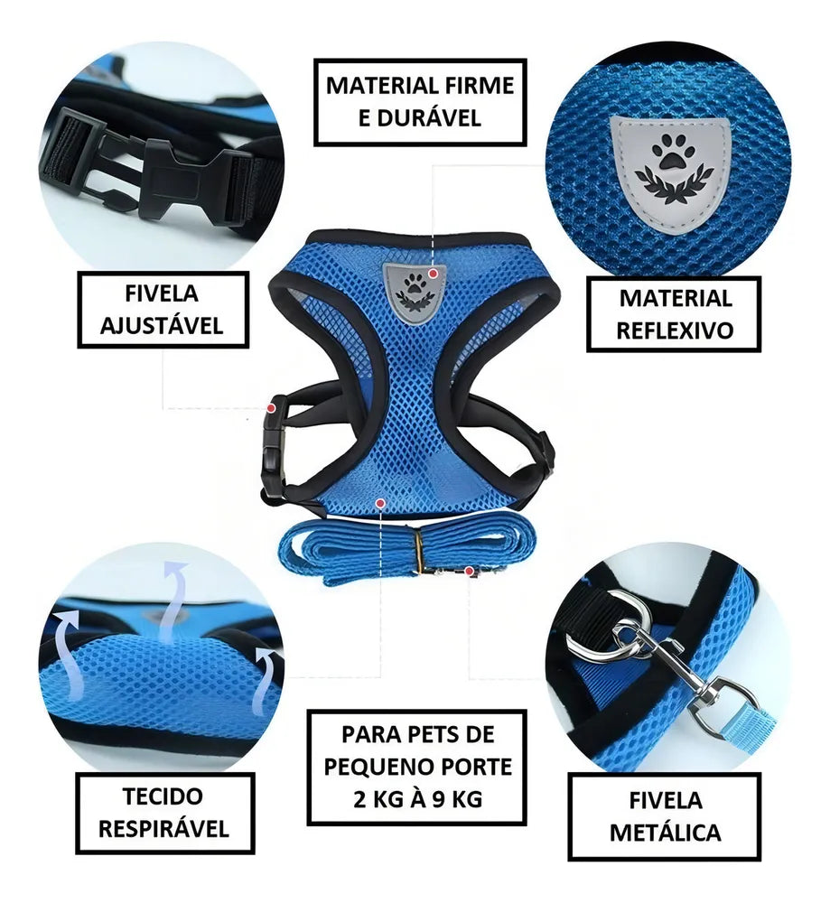 Este produto inclui um peitoral e uma guia de 1,20 cm, ideal para cães de pequeno porte e gatos. As dimensões variam, por isso é importante medir o seu pet para garantir o ajuste correto.