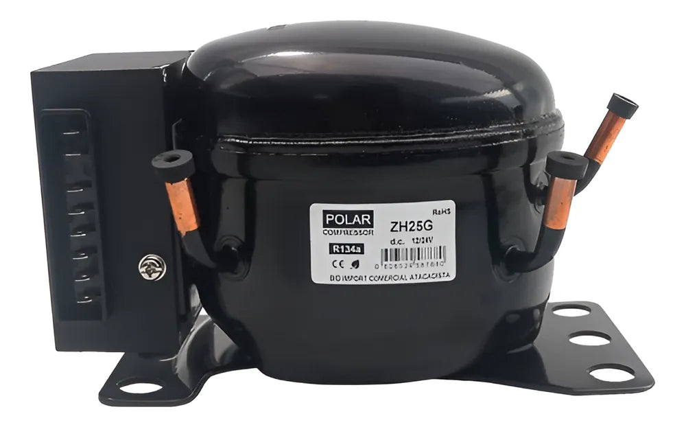 O Compressor 12v Modelo Zh25g é ideal para geladeiras e freezers de 12/24V DC utilizados em caminhões, ônibus, trailers, veículos náuticos, residências e afins.