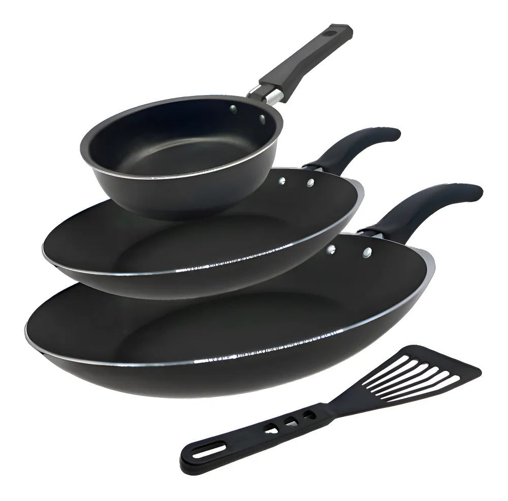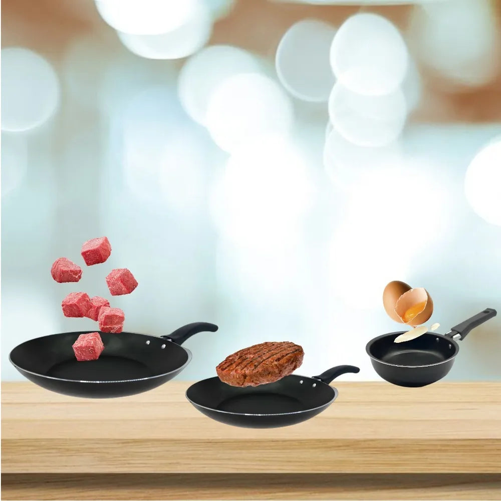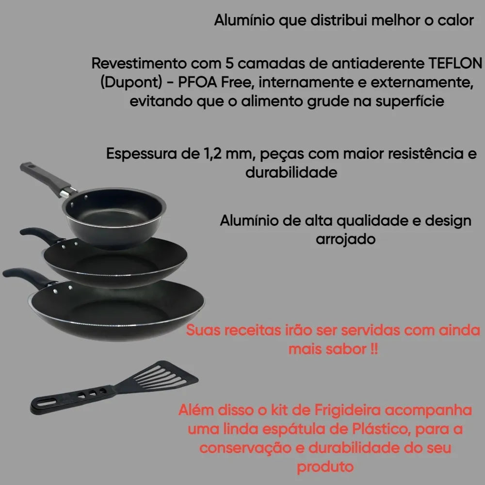 Nosso Jogo de Frigideira 3 peças Antiaderente Techflon Nacional, versáteis, incrivelmente charmosas e com design arrojado. O diferencial está em seu material, alumínio de alta qualidade, espessura de 1,2 mm, que confere ao item uma estrutura resistente garantindo a durabilidade e distribuição eficiente do calor, proporcionando o cozimento mais rápido e uniforme dos alimentos. Revestido com 5 camadas de antiaderente TECHFLON , internamente e externamente, evitando que o alimento grude na superfície, o que possibilita o preparo dos alimentos com menos gordura, além de proporcionar praticidade no momento da limpeza. Cabo reforçado ergonômico, feito em baquelite, material antitérmico que não retém calor, para garantir facilidade e máxima segurança no manuseio.