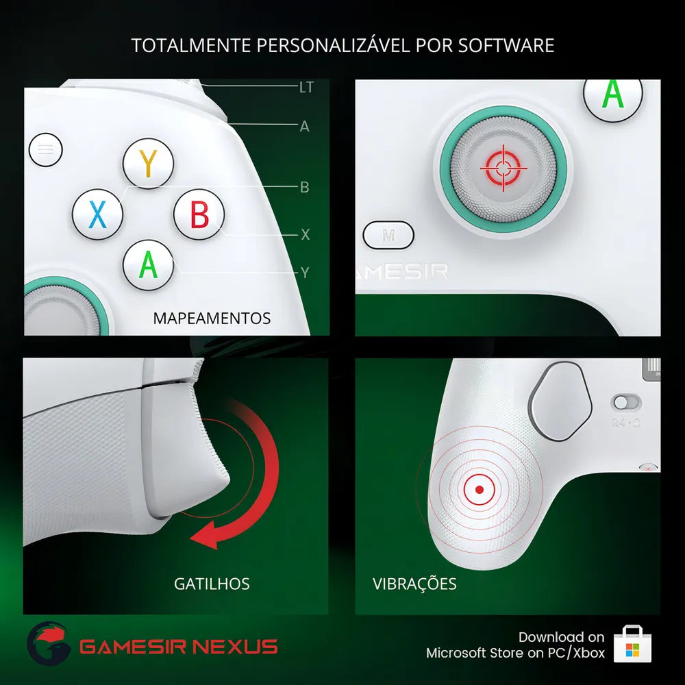 Personalização Total via Software: Use o GameSir Nexus para personalizar seu controle. Mapeie botões, ajuste zonas de sticks e gatilhos, e configure a vibração para uma experiência sob medida.