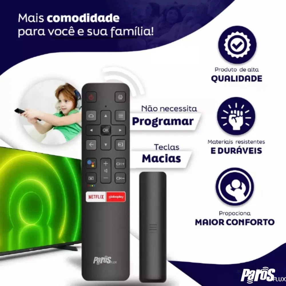 Controle Remoto TV TCL Smart com Android e 4k.