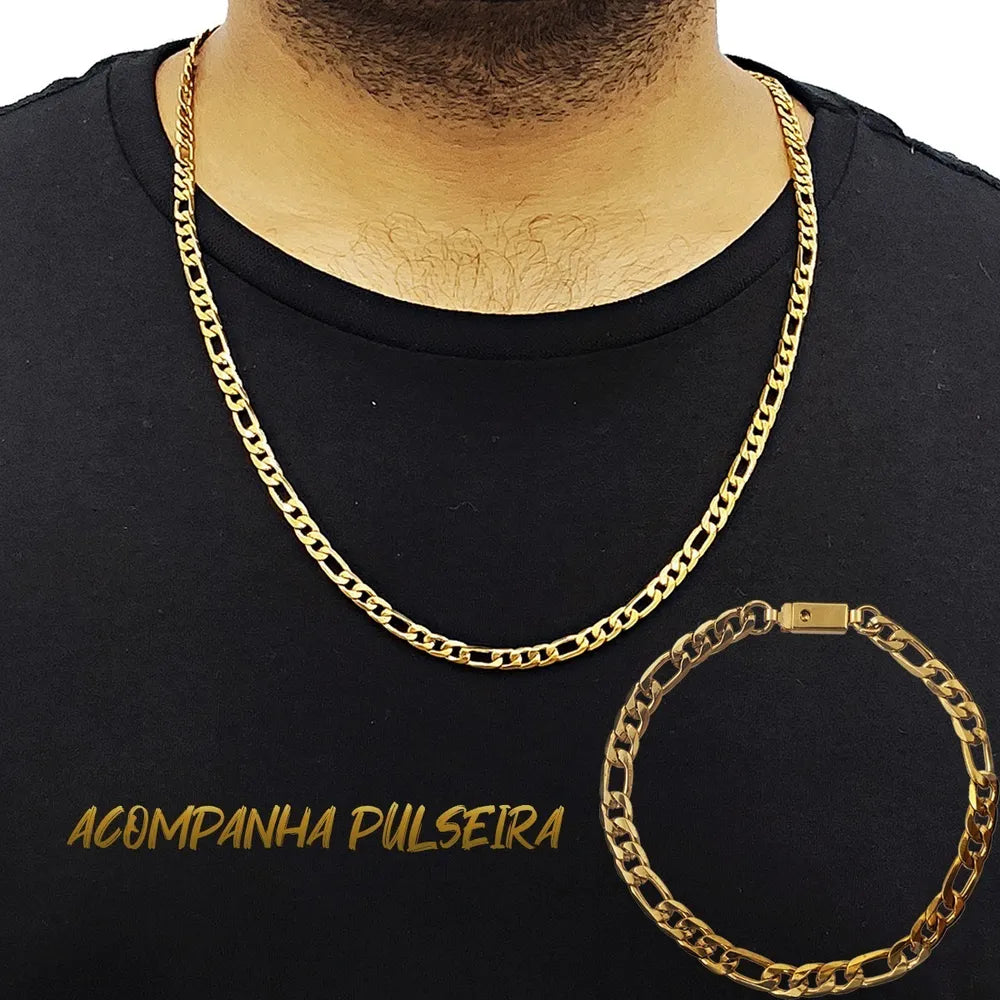 Não perca a chance de mostrar o seu estilo elegante e masculino - adquira agora mesmo esta corrente e pulseira banhadas a ouro e prepare-se para receber elogios e olhares de respeito!