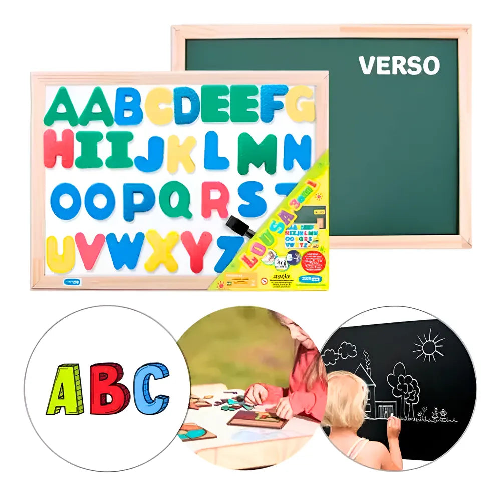 Modelo: Lousa Infantil ABC Magnetica Dupla Quadro Negro 40x30 Cm