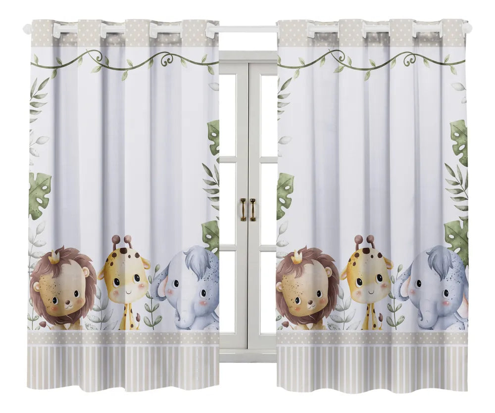 Safari Kids Bege - Cortina Infantil 2,00 X 1,50 Estampada