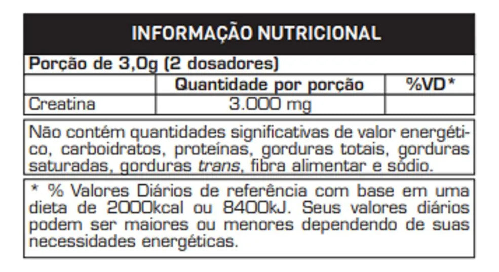 A Anvisa determina que o consumo de creatina seja de 3g ao dia.