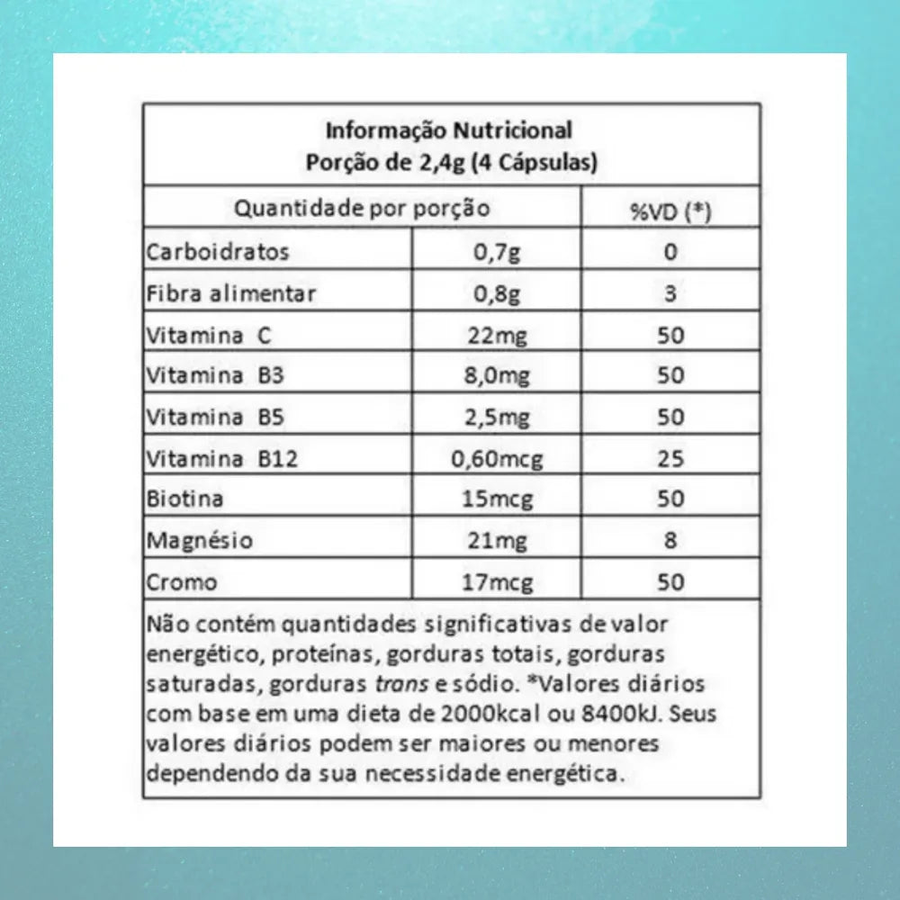 • Este produto é um suplemento dietético, não um medicamento. Suplementa dietas insuficientes. Consulte o seu médico e/ou farmacêutico.
