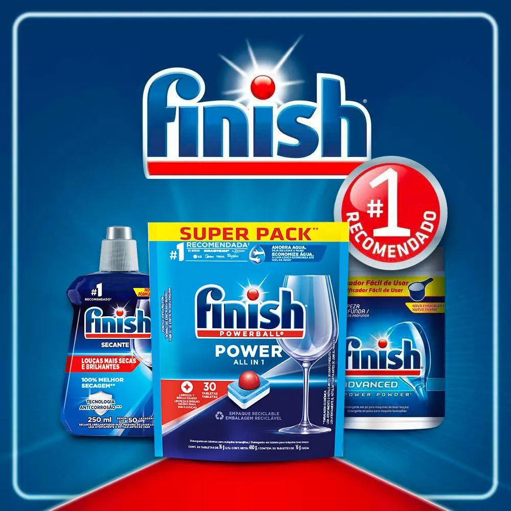 Sua louça perfeitamente limpa de primeira, sem a necessidade de pré-lavagem, resultando em economia de água, oferece limpeza poderosa e brilho perfeito em um único tablete. É muito mais que um sabão lava louças, pois sua exclusiva tecnologia Powerball combinada com agentes secantes que deixam sua louça limpa, brilhante e seca, sem necessidade de pré enxague!