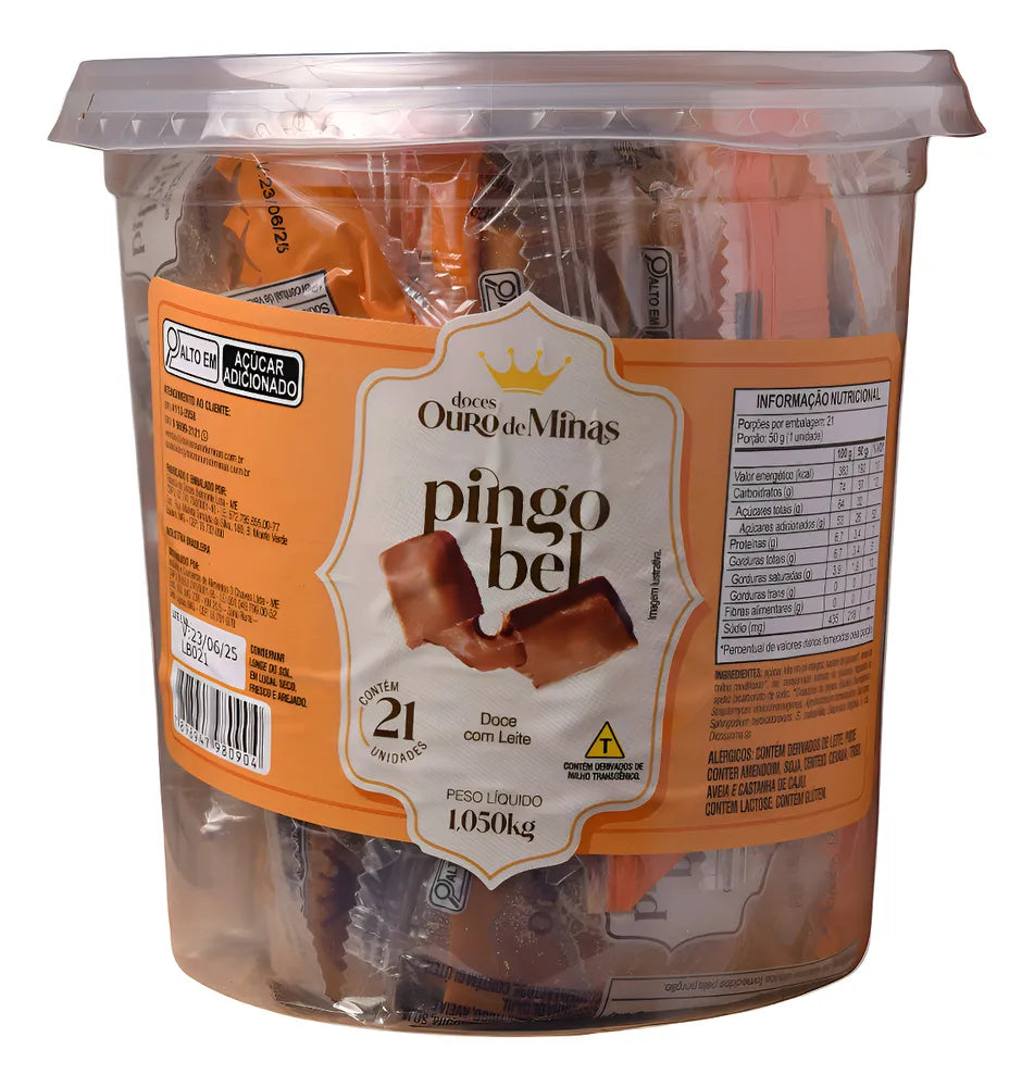 Pingo Bel é um delicioso doce de leite com casquinha crocante por fora e um recheio cremoso por dentro. Produzido com ingredientes de alta qualidade, esse produto oferece uma experiência irresistível ao paladar, desmancha na boca, proporcionando o prazer de saborear o autêntico doce de leite de Minas Gerais! Ideal para servir como sobremesa, em comemorações e eventos diversos. Pote com 21 unidades de 50g.