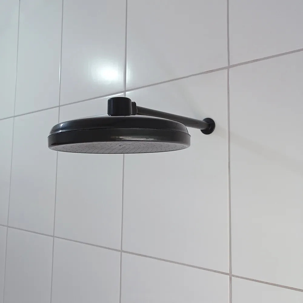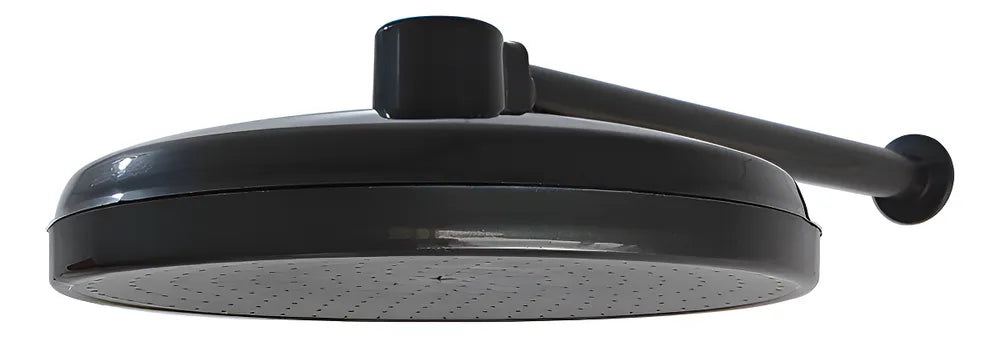 A cor preta dá um toque de elegância e sofisticação, combinando facilmente com qualquer decoração externa. A ducha tem uma forma redonda, que proporciona um fluxo de água uniforme e agradável, perfeito para um banho refrescante nos dias quentes de verão.