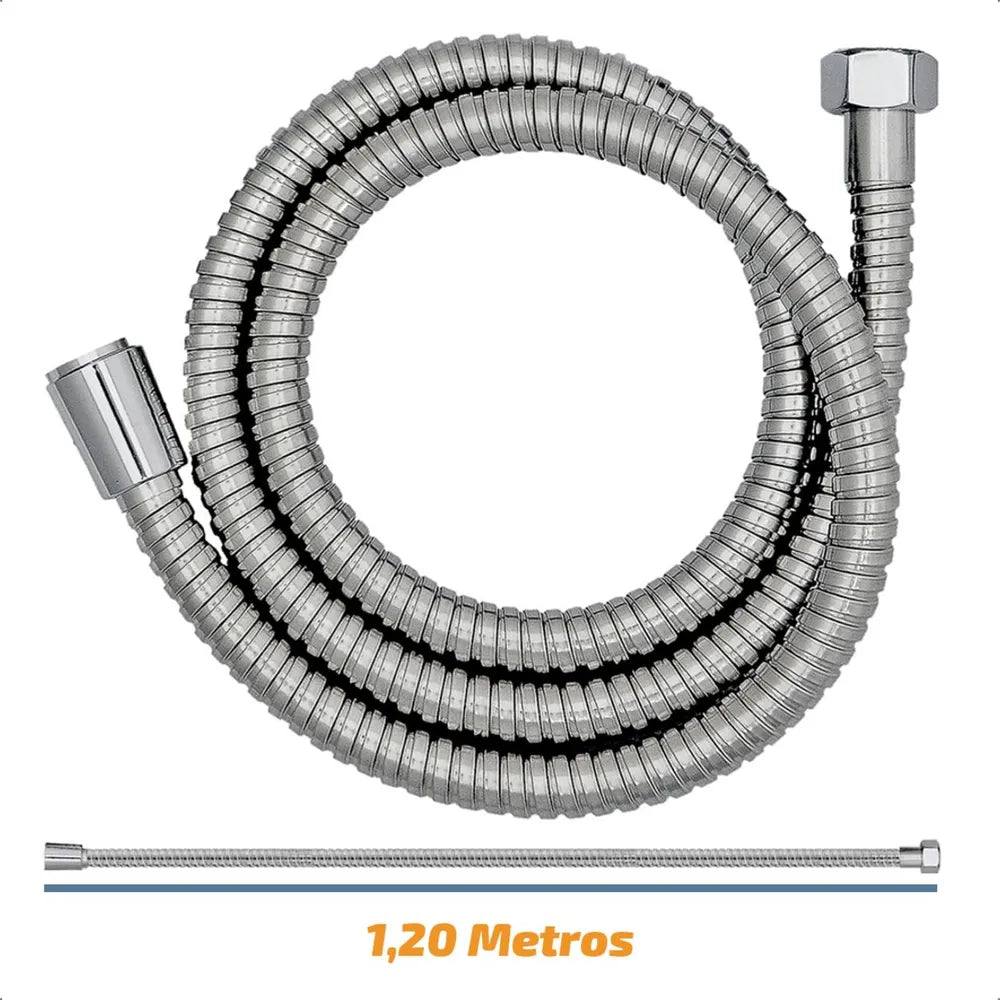 Acompanhada por uma mangueira de 1,2 metros, possui o tamanho ideal para evitar enrolações indesejadas.