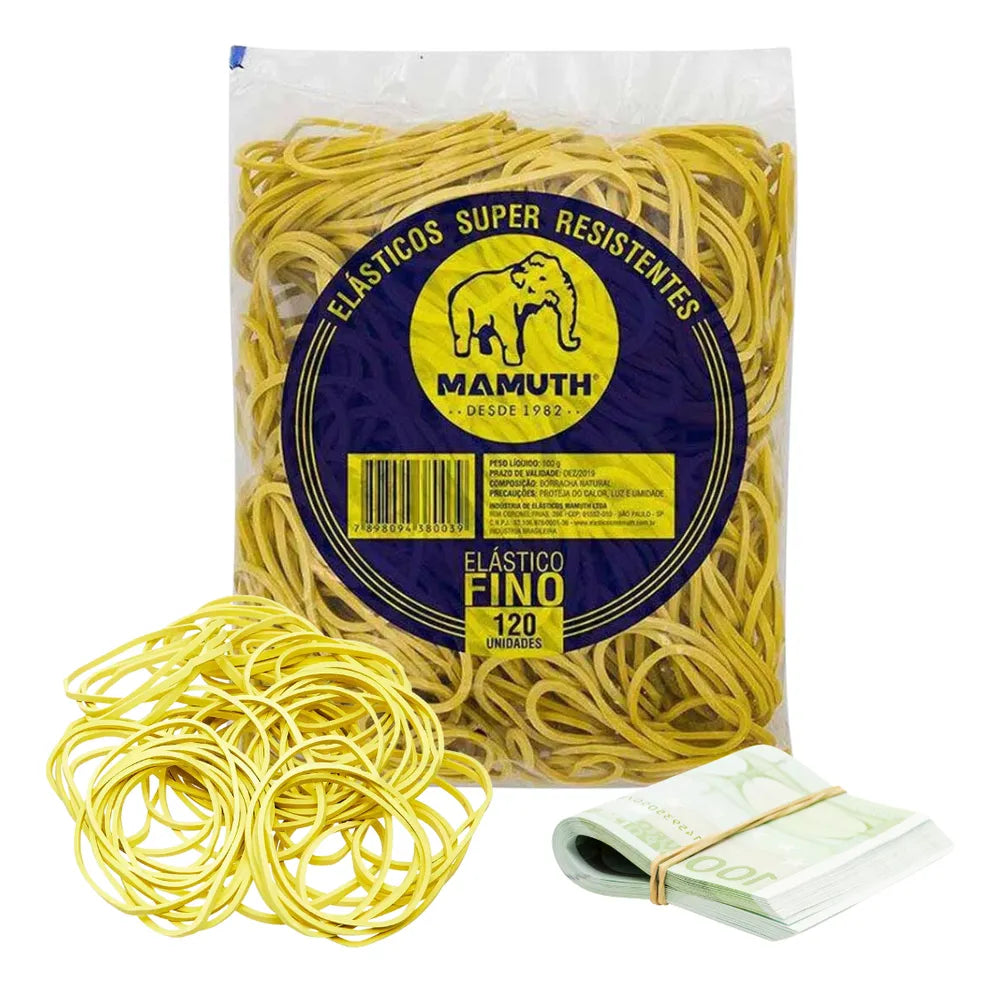 O Elástico Latex Mamuth 100g Un é um produto de alta qualidade da marca Geral. Com um diâmetro de 80 mm e espessura de 2 mm, é perfeito para diversas aplicações. Cada embalagem contém 120 unidades de elásticos, proporcionando durabilidade e praticidade. Seu tamanho de 18 é ideal para uso em escritórios, escolas e em casa. O elástico vem em um saco de fácil armazenamento. Aproveite essa oportunidade e adquira já o Elástico Latex Mamuth 100g Un!