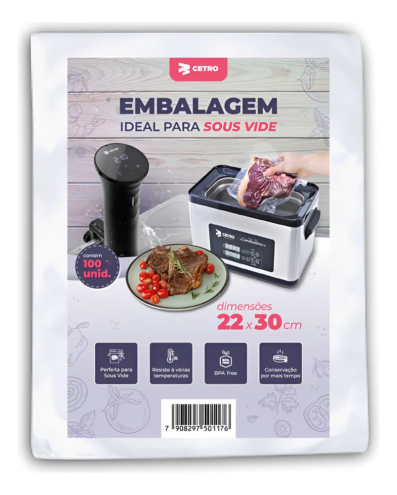 As Embalagens a Vácuo da Cetro são fabricadas com Nylon Poli, livres de Bisfenol A, com alta resistência. Para máquinas de outras marcas, verificar a compatibilidade.