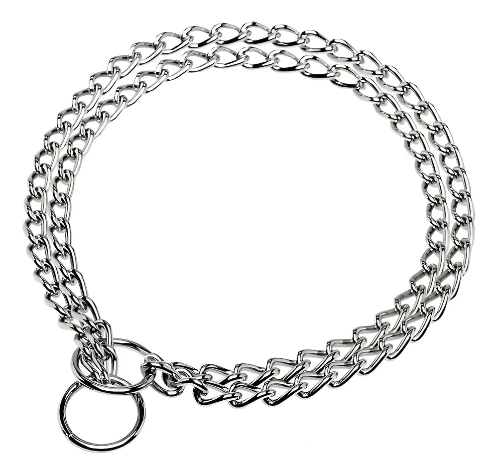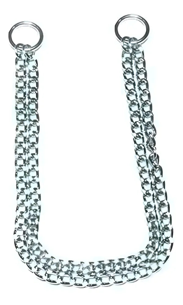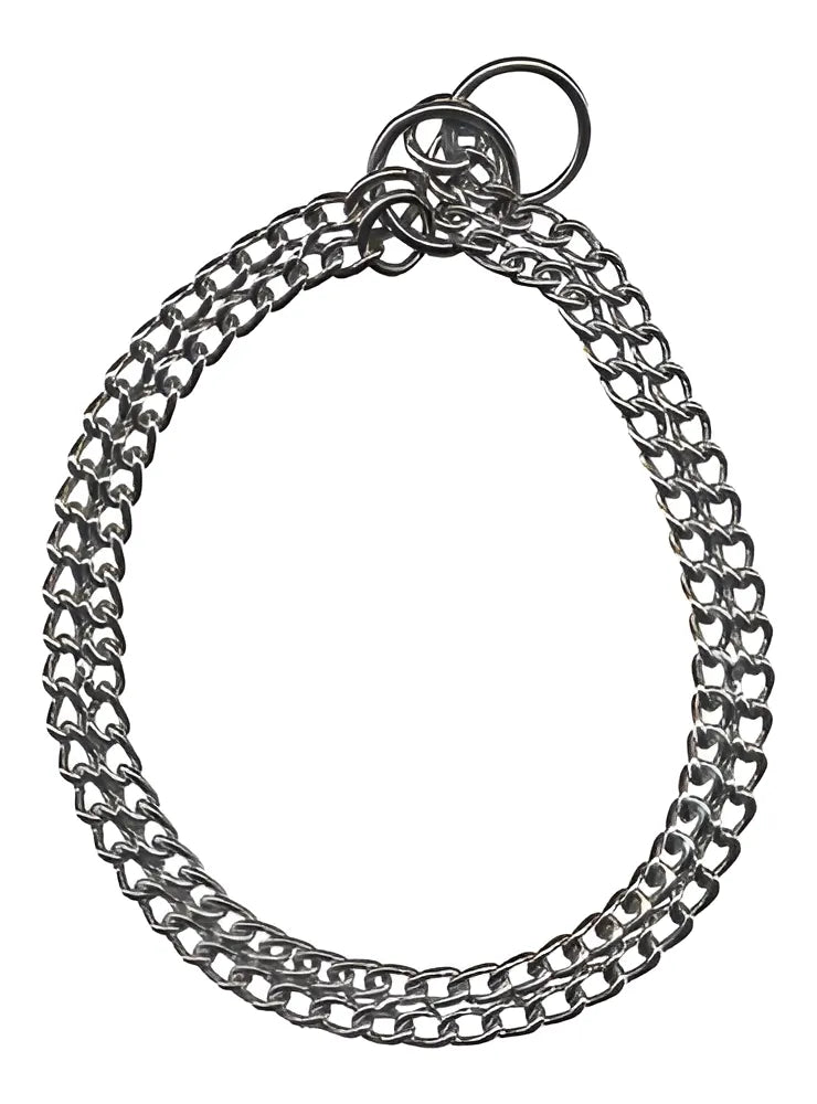 Este produto é um Enforcador Colar Elo Chato 3.5 X 60 - Reforçado Duplo Cor Prata, da marca Jc Correntes. É uma coleira de alta qualidade, com um design único chamado Elo Chato. Este modelo de coleira é conhecido como enforcador, que é ideal para treinamento e controle de seu animal de estimação. A cor prata dá um toque de elegância e sofisticação ao produto.