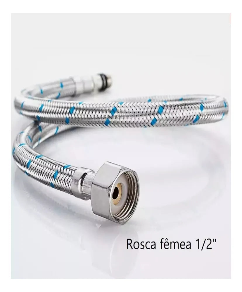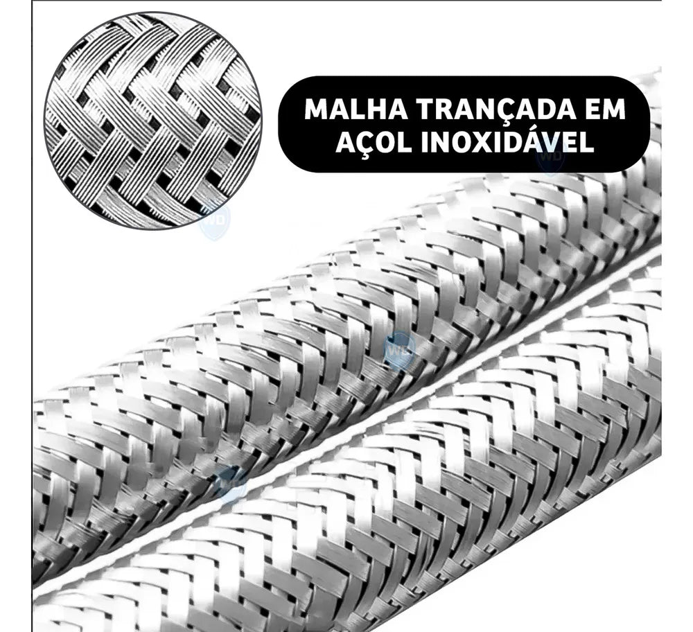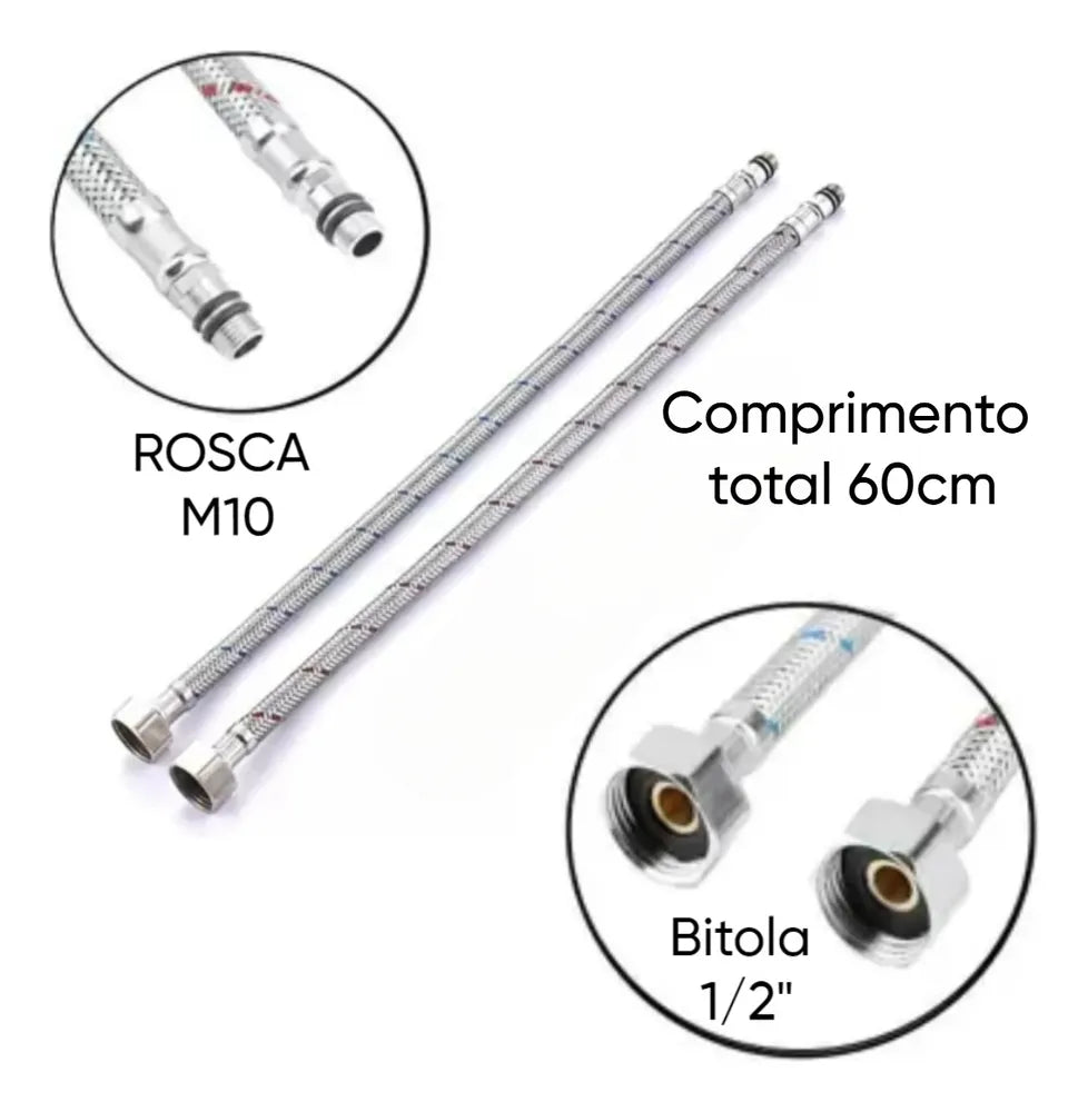 Par Engate Mangueira Flexível Para Torneiras Monocomando Em Aço Inox com 60 cm