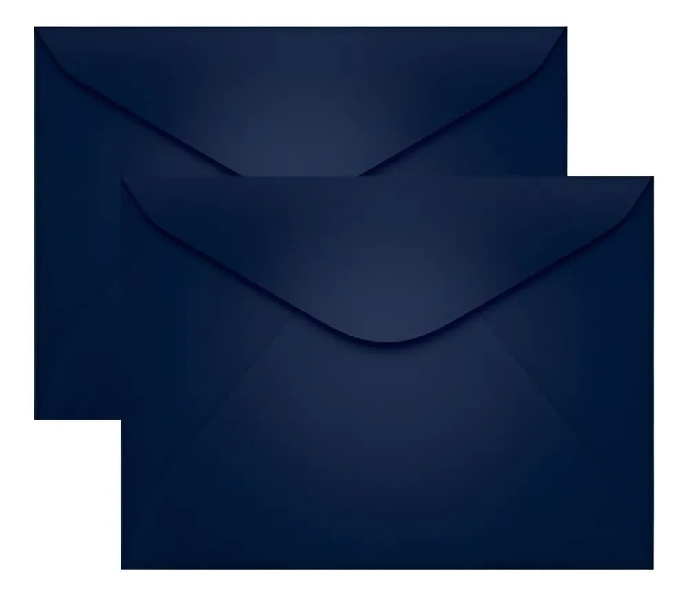 Envelope Carta na cor Azul-escuro, produzido com papel especial colorido na massa, garantindo excelente acabamento ao produto e a mesma tonalidade nas duas faces do papel.