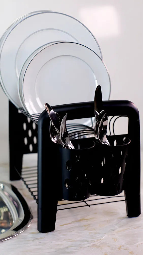 Fabricado em plástico e aço, o Escorredor Arthi é resistente e durável, garantindo o máximo de desempenho e proteção contra ferrugem. O acabamento em preto adiciona um toque de sofisticação, combinando facilmente com outros itens de sua cozinha.