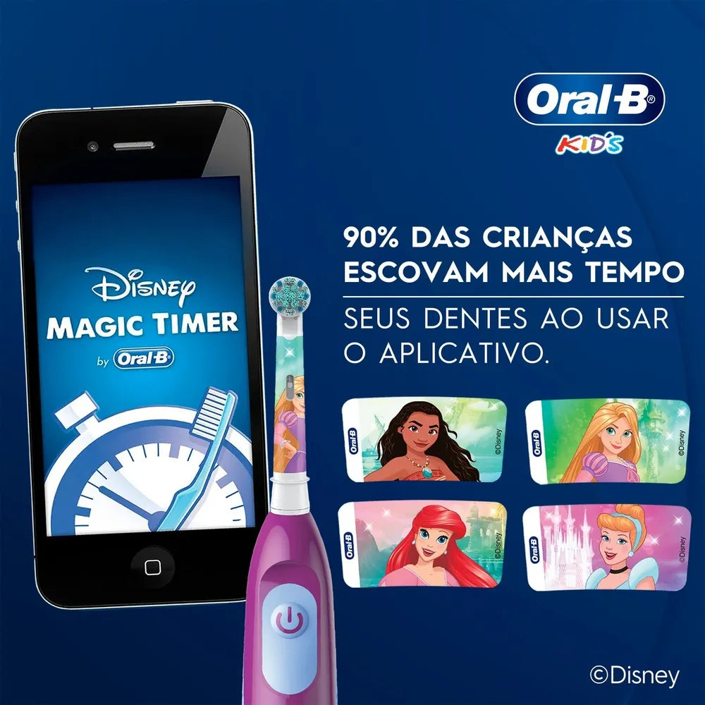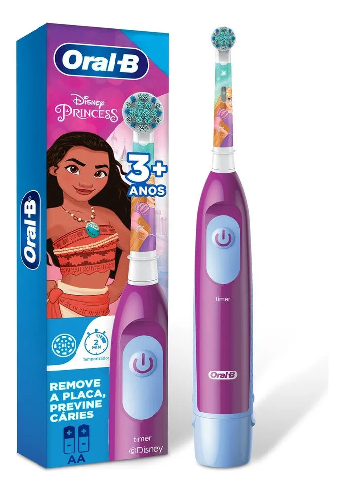 A Oral-B Kids, escova de dentes elétrica projetada para crianças a partir de 3 anos, combina a magia das melhores princesas da Disney com a limpeza eficaz e suave das escovas elétricas Oral-B recomendadas por dentistas. Esta escova limpa suavemente os dentes das crianças e remove mais placa do que uma escova manual regular.