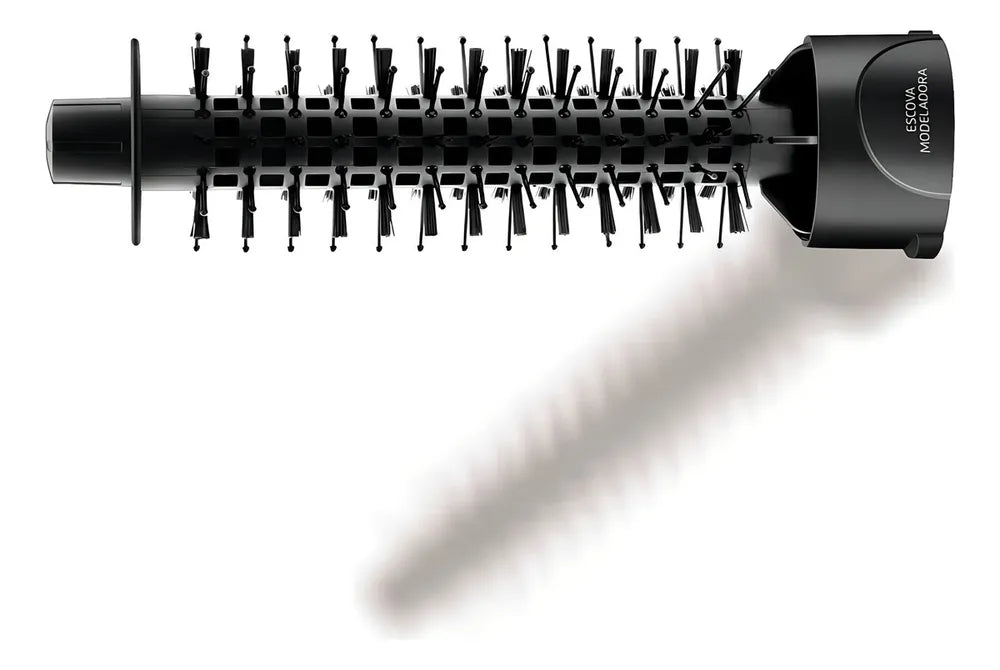 A escova Mondial une o movimento rotativo, parecido com a escovação, com o calor do secador. E tem duplo sentido de rotação: gira 360° nos dois sentidos, permitindo modelar o cabelo para dentro ou para fora.