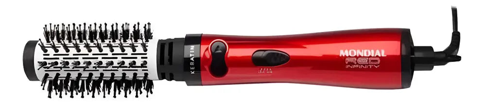 A escova rotativa Mondial possui revestimento em cerâmica com queratina e distribui o calor de maneira uniforme. Com o aquecimento, a Queratina libera partículas que garantem a proteção dos fios. O resultado: fios mais fortes, saudáveis, alinhados e sem frizz.