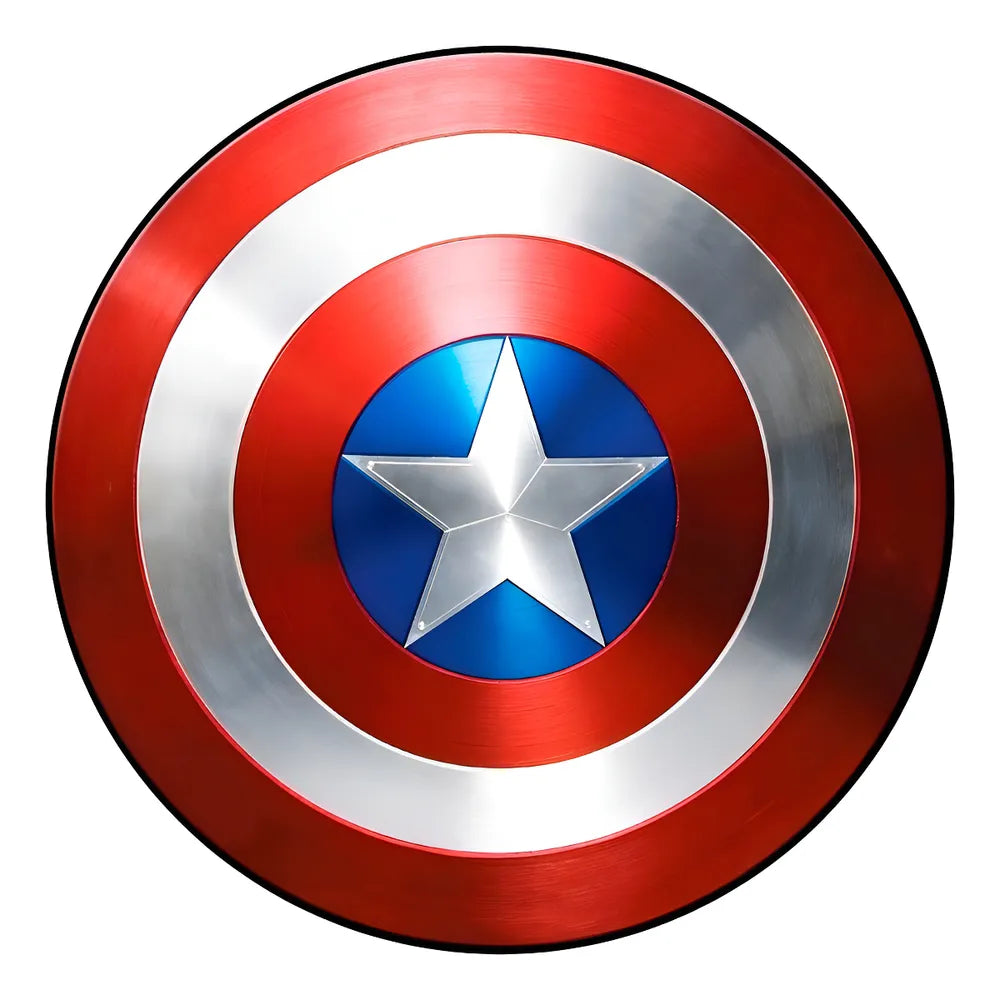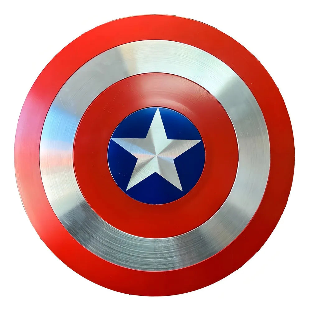 Fabricado em aluminio, traz detalhes reais do escudo do Heroi Capitão America. Possui excelente pintura e excelente resistência.