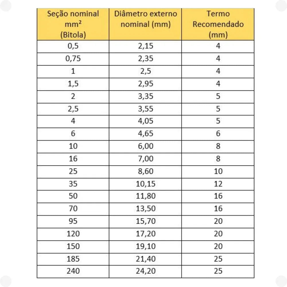 Taxa de retração 2:1, portanto pode contrair até metade do seu tamanho original.