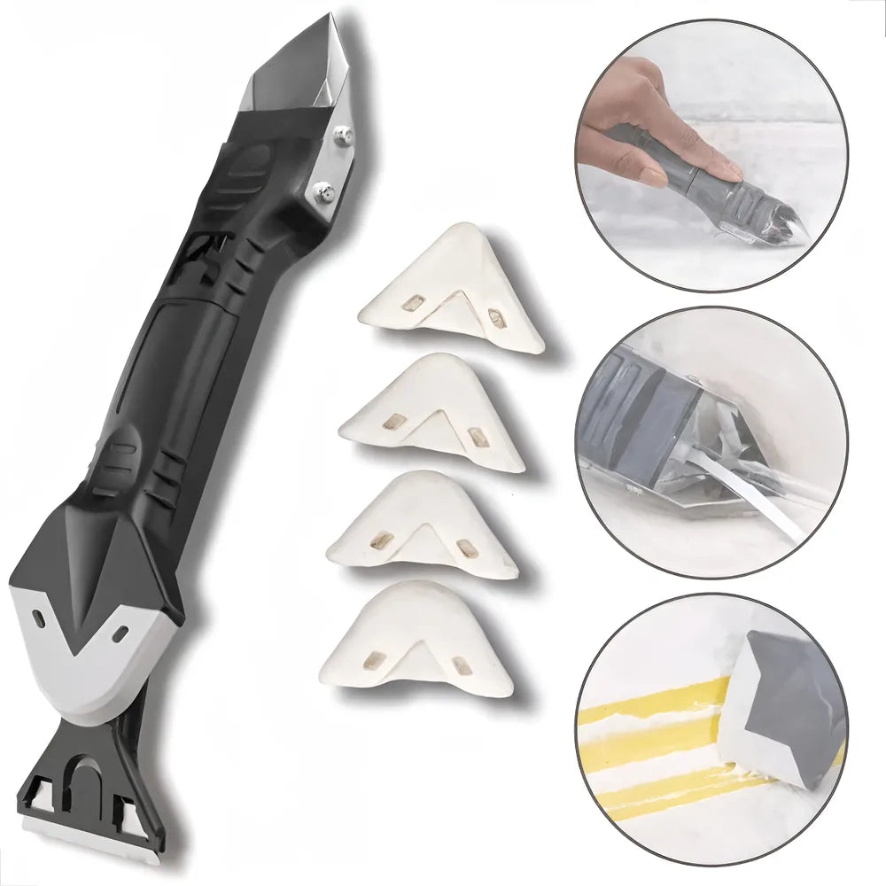Simplifique suas tarefas de acabamento, limpeza e raspagem com a Espátula Removedora de Silicone e Rejunte 3x1.