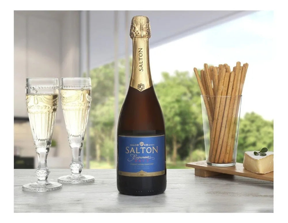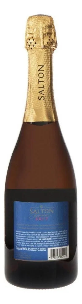 O Espumante Brasileiro Natural Brut Salton é produzido nas montanhas da Serra Gaúcha, elaborado com uvas Chardonnay, Prosecco e Trebbiano selecionadas. Passa por duas fermentações com temperatura controlada: a primeira para elaboração do vinho e a segunda para formação natural do gás carbônico nas autoclaves (método Charmat).