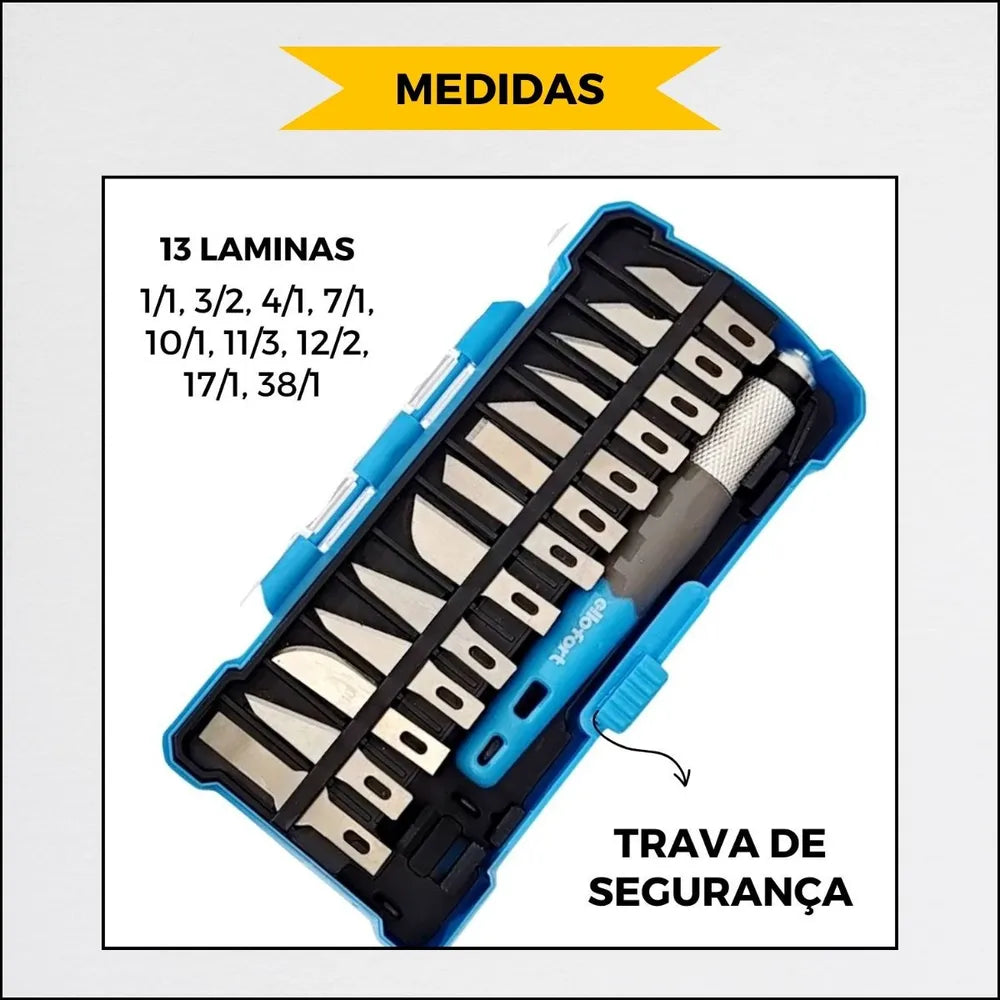 - Estojo Organizador – Mantém todas as lâminas armazenadas com segurança, evitando perdas e facilitando o transporte.